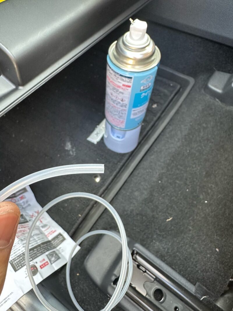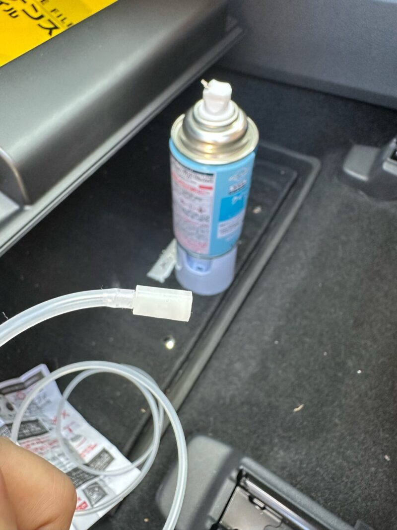 A/Cをonにした状態で5分間放置しておきます。結露水が発生して中の汚れなどが流れ出てきます。放置している間に防臭剤の準備をしておきましょう。