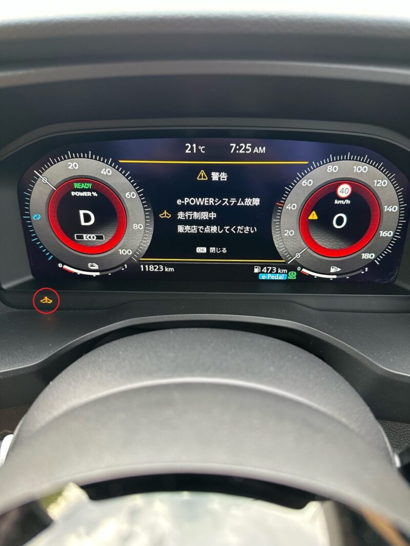 『e-POWERシステム故障 走行制限中 販売店で点検してください』故障とか走行制限中とか不安なワードばっかり🤣