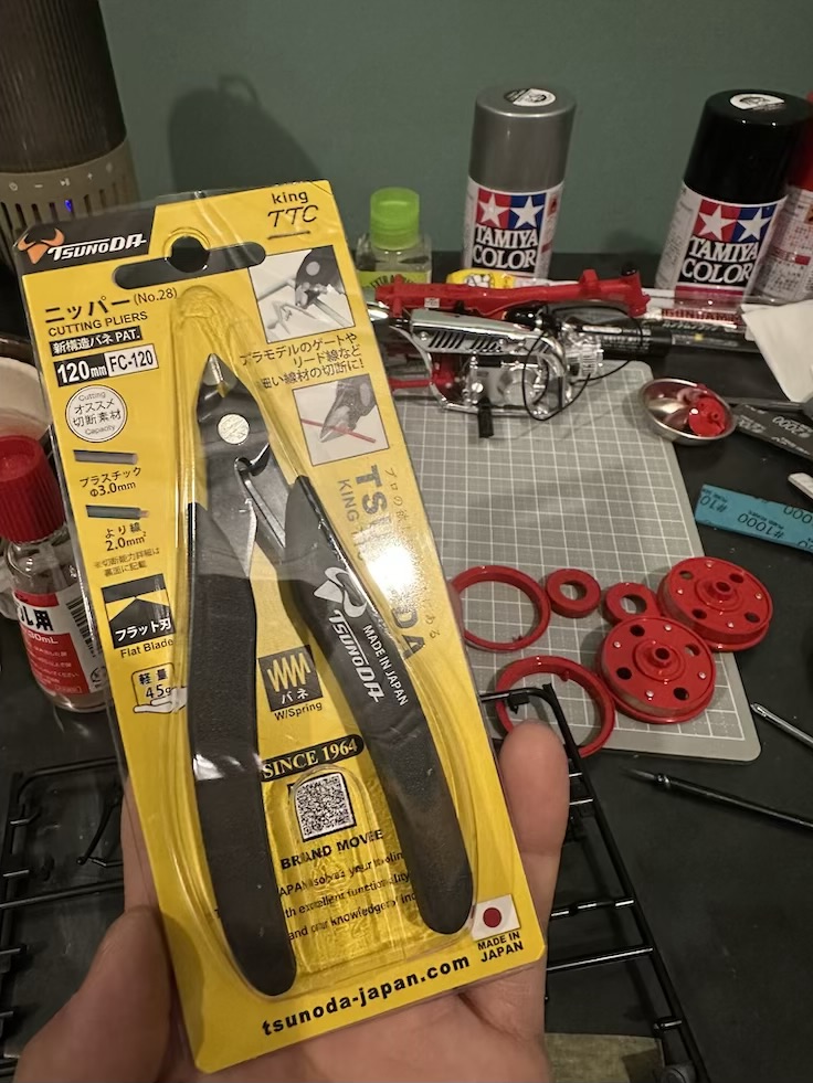 先ほども言ったんですが道具類はほぼ100均ですよ😏初めてなんでこれで十分でした。ピンセットとかはちょっと掴みがあまかったりするんでプラモデル用買おうかなって思ったのとニッパーは手持ちのKTCのやつ使ってましたけど刃が太すぎるんで途中でツノダのプラモデル用を購入しました。