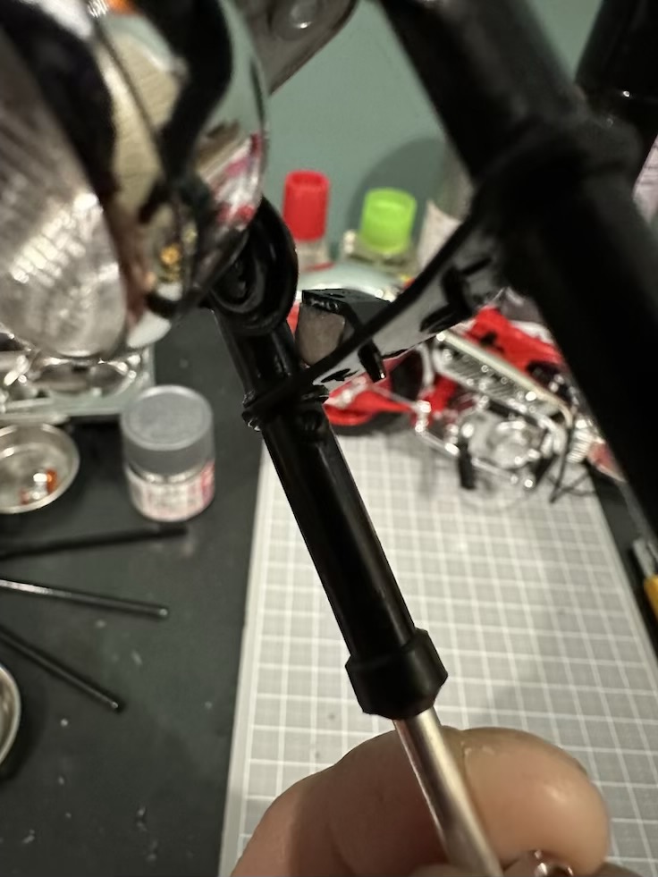 精度は高めなんで苦労する部分は少ないけどフロントフォークの固定ピンとか超小さくて挿し込むのにめちゃくちゃ苦労したしピンが飛んで行ってしまって無くしかけた💦何とか見つかったんやけどその後も挿し込みに手間取った。